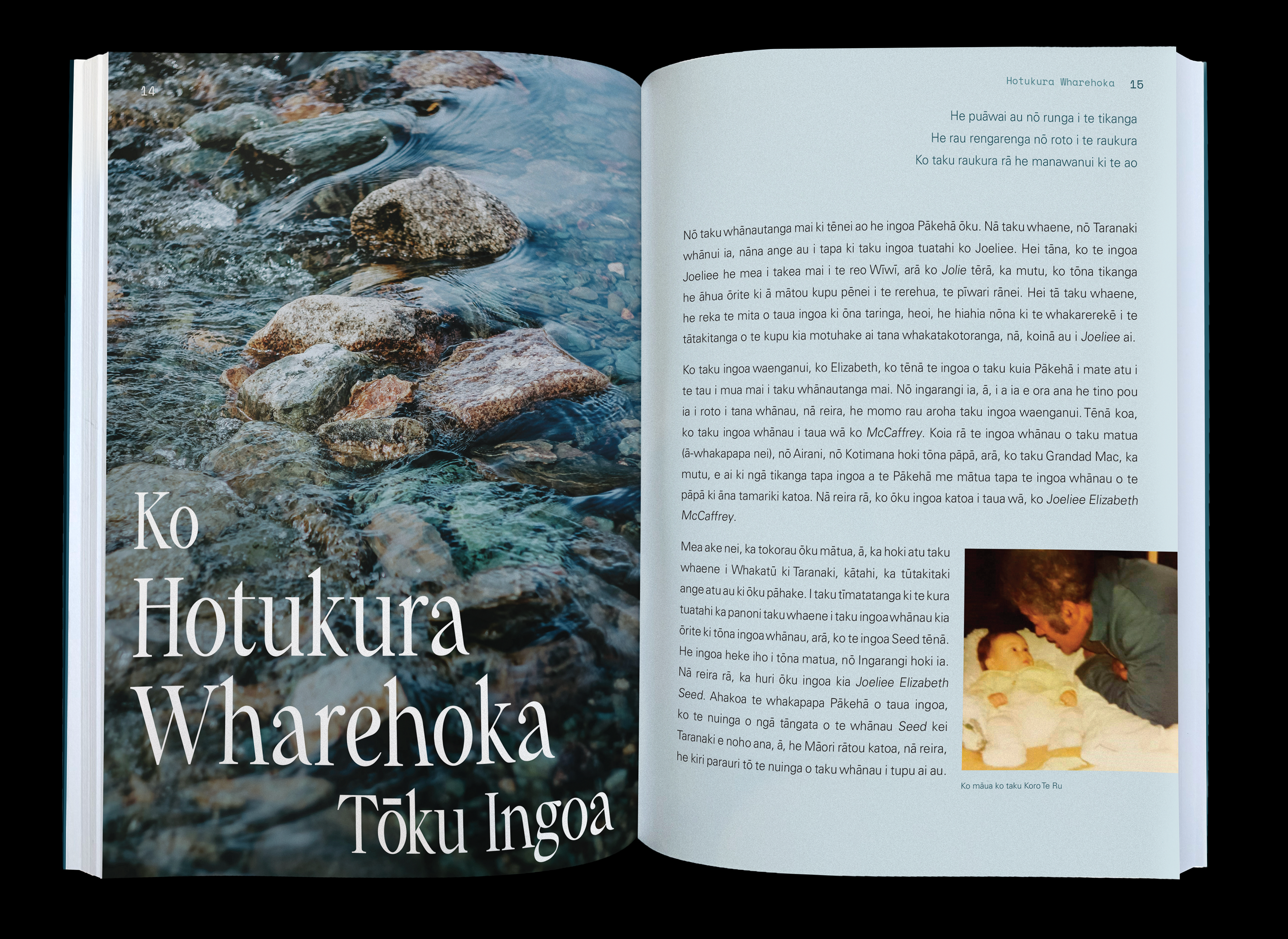 mō tana whakawhitinga mai i te ingoa o Joeliee ki tōna ingoa o nāianei, ko Hotukura Wharehoka. Nā, whai muri ake i a ia, ko ngā poupou kōrero tokoono o te puka nei, ko Ruakere, ko Te Rita, ko Atakohu, ko Hinekura, ko Hineitimoana, rātou ko Te Taka. Ko tā rātou mahi he whakapuaki i te horopaki i whānau mai ai rātou, te āhua o ō rātou ohinga, ngā piki me ngā heke o te whāinga roatanga o te ako i te reo Māori, otirā, te take i whai ingoa Māori ai rātou katoa.