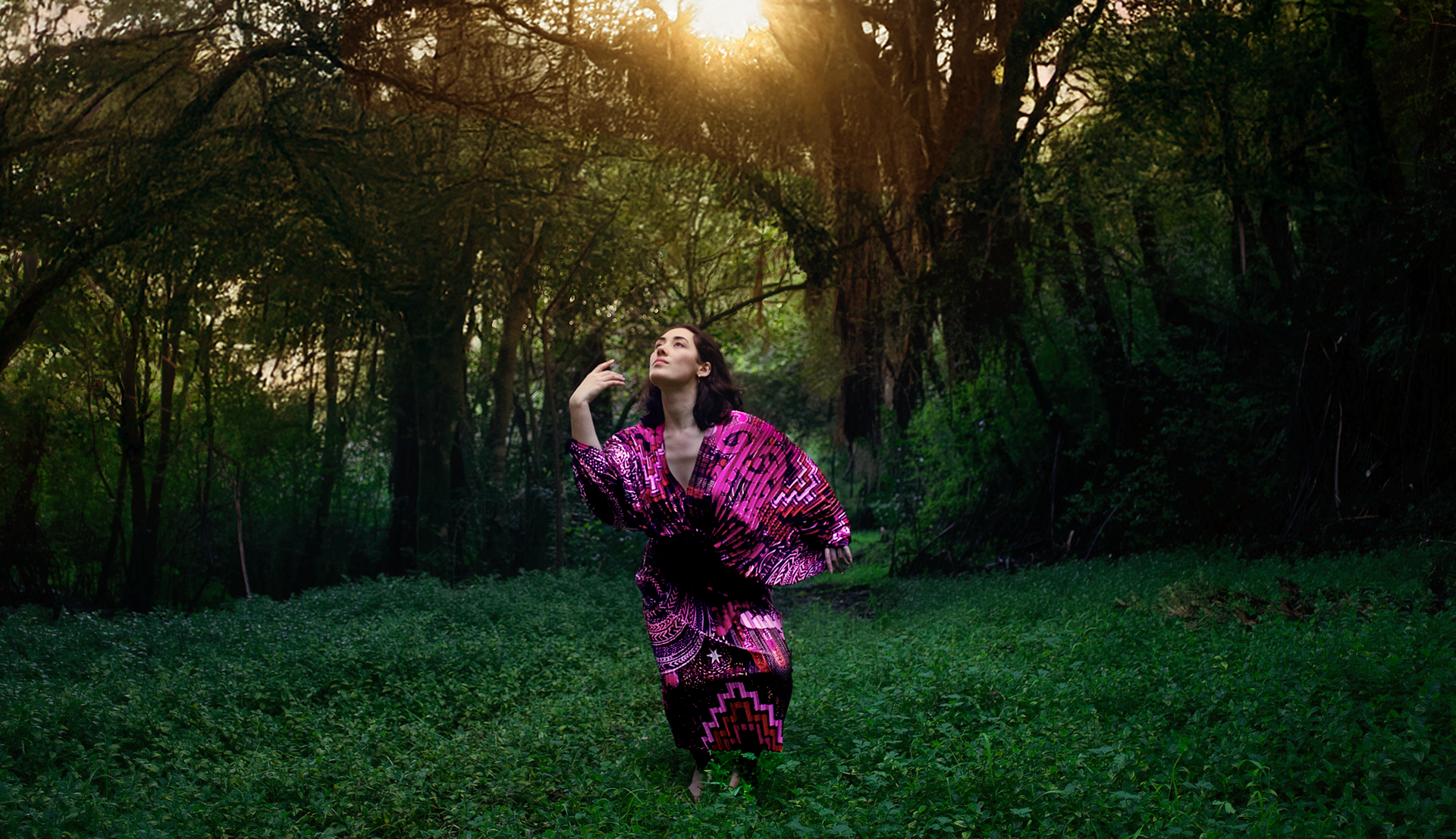 Haeata is the first shimmer of light on the horizon, the break of dawn after the long embrace of night. It is a moment of stillness as darkness softens and light emerges casting a glow across the land. This textile design portrays the transformation that takes place as the world begins to stir; from a still dark silence, there is movement, light and life. It features vivid patterns of koru, pouhine and rauru as well as the vibrant hues of early morning light to showcase the potential of a new day.